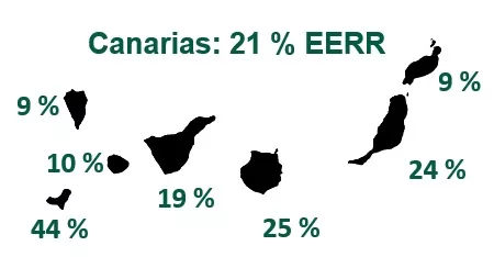 - Lanzarote: 7.73% Eólica y 1.22% Solar fotovoltaica.